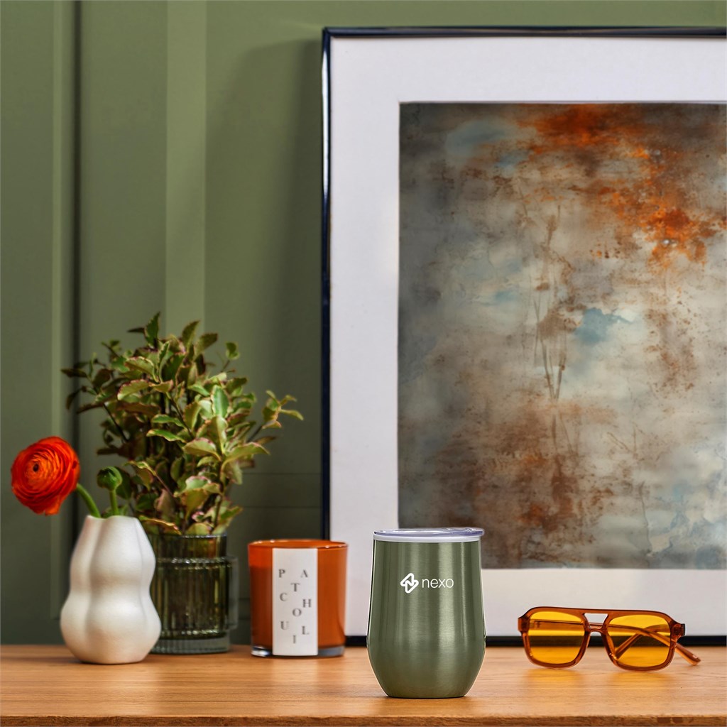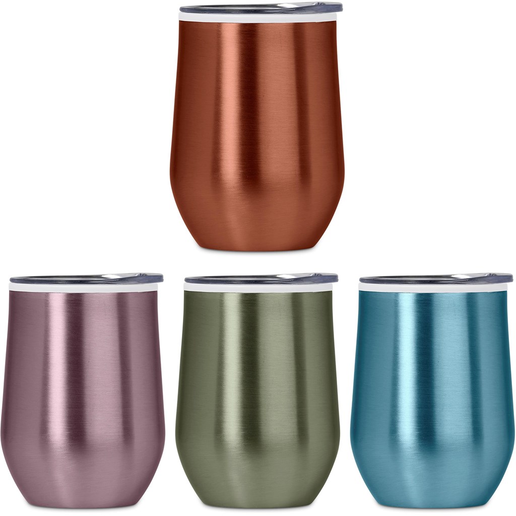 This classic design BPA-free, double-wall cup can be used as an on-the-go coffee cup, or as a tumbler for wine or other beverages when you’re outdoors. It has a stainless steel outer wall and a polypropylene inner wall that keeps drinks hot or cold for longer, and a secure push-on lid. If you’re looking for something a little different from your standard corporate and promotional colours, then consider this refreshing double-wall tumbler, which is offered in contemporary, fashionable colours with a striking finish.